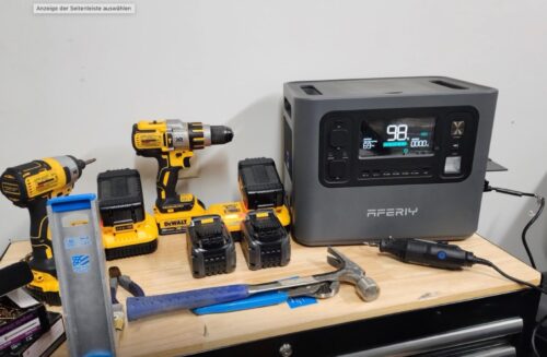Die Ausgangsleistung ist wirklich beeindruckend. Zum Test habe ich eine Schlagbohrmaschine mit 500 Watt betrieben. Nach zwei Stunden ununterbrochenem Arbeiten hatte der Akku der Powerstation nur 3 % Kapazität verbraucht.