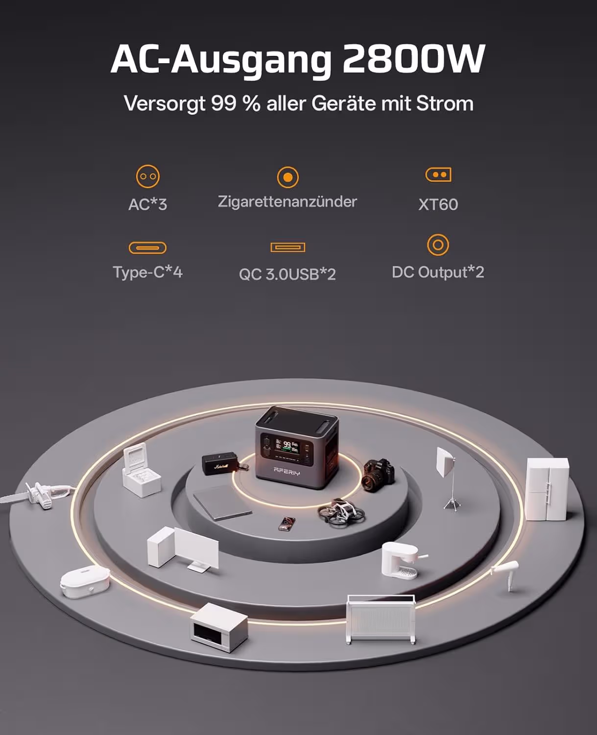 - ✅ 1× AFERIY P280 Tragbare Powerstation 2800W